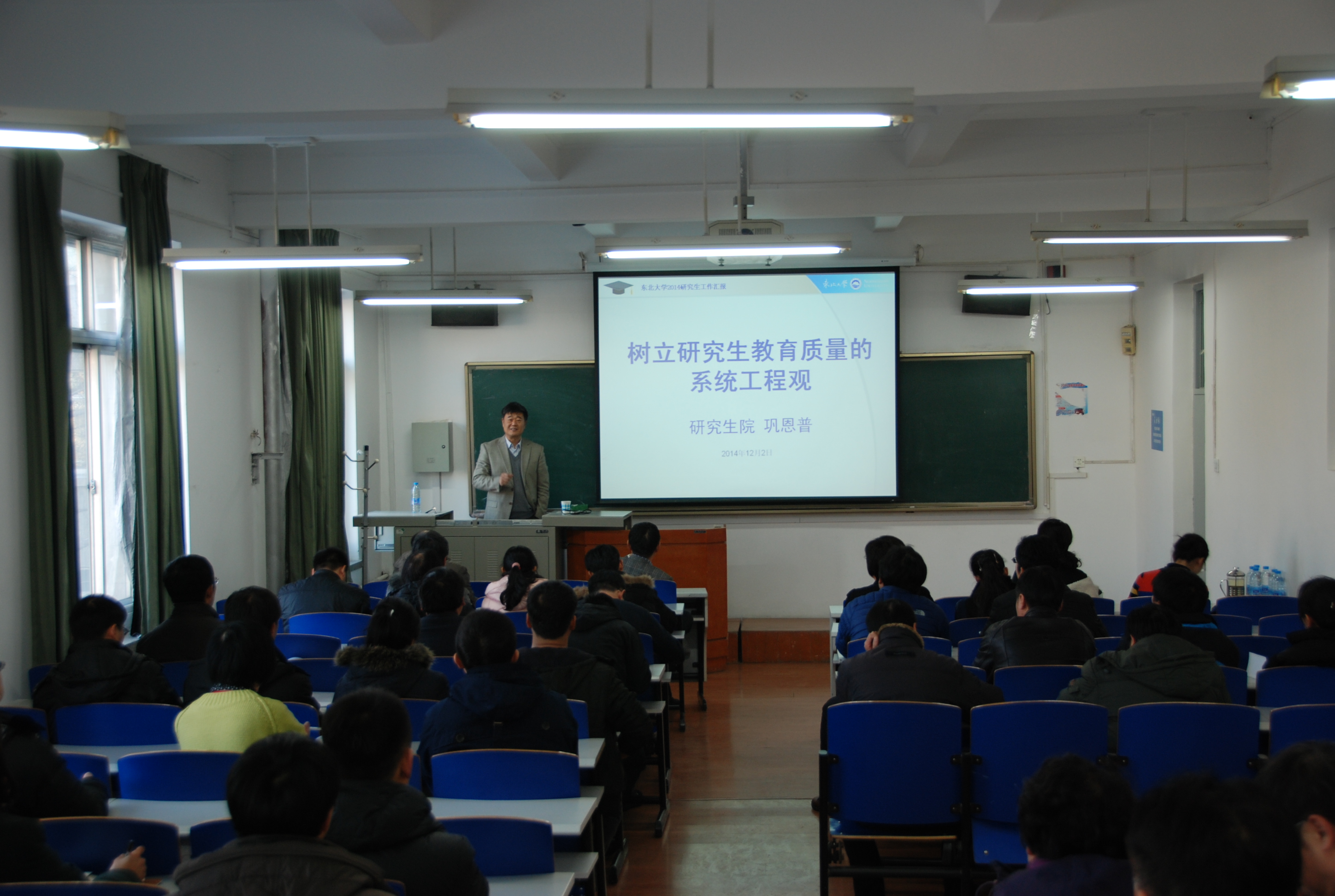 巩恩普教授首先对学院多年来在研究生培养方面取得的成绩表示了充分的肯定,他结合自己多年研究生教育与培养的经验从研究生教育的重要性入手,指出研究生教育是国家发展的重要战略,并从研究生教育现状、如何评价现阶段研究生培养质量、我校研究生培养质量现状、质量保障措施、今后的工作思路等五个方面为到场教师进行了详细介绍。