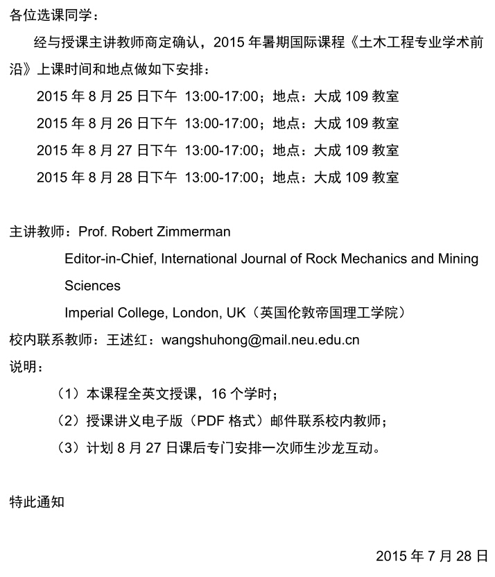 《土木工程专业学术前沿》暑期国际课程开课通知