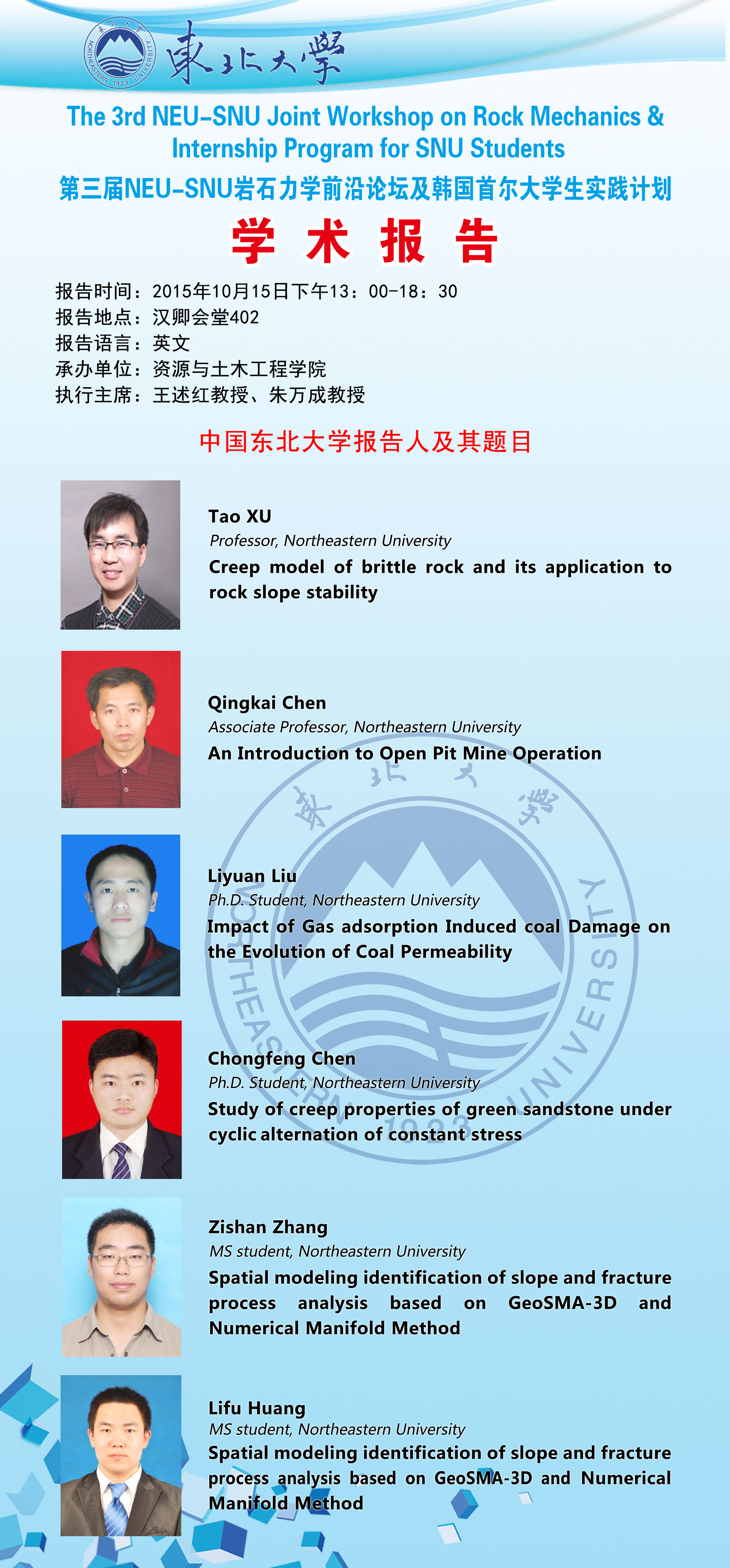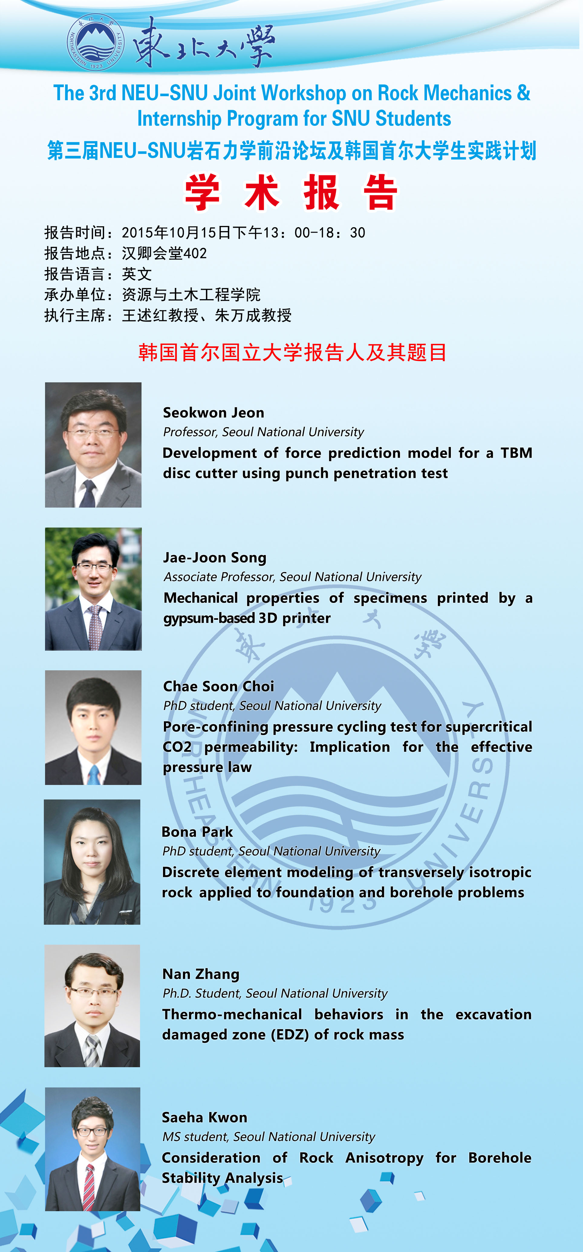 第三届NEU-SNU岩石力学论坛报告预告