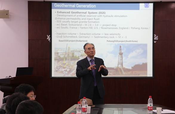 李正仁院士作了题为“Case study on induced seismicity during the injection of fluid related to energy development technologies”的学术报告,介绍了水压致裂诱发地震活动的力学机制、诱发地震活动与能源开发技术的关系等前沿课题。