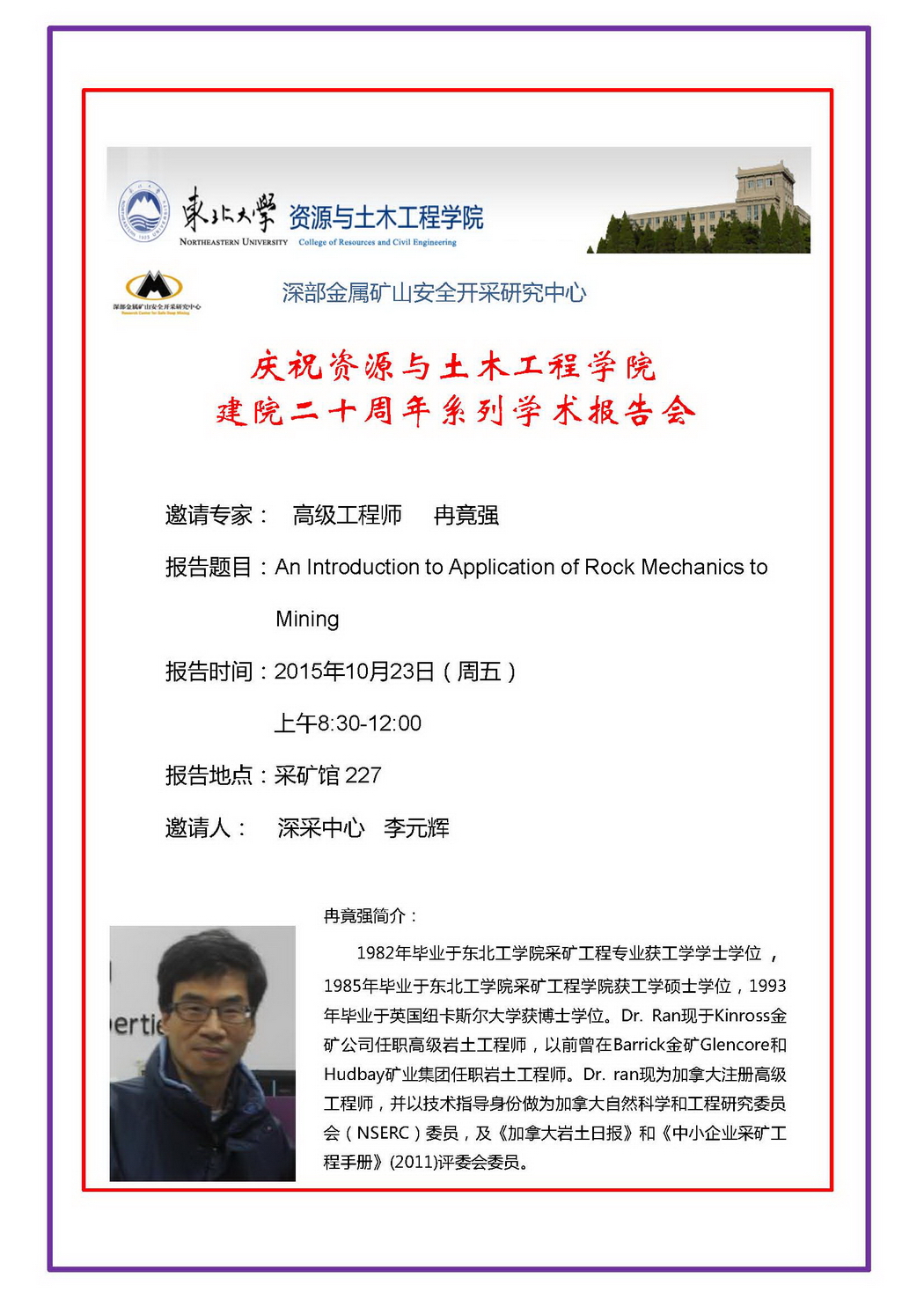 庆祝建院二十周年系列学术报告预告(五)