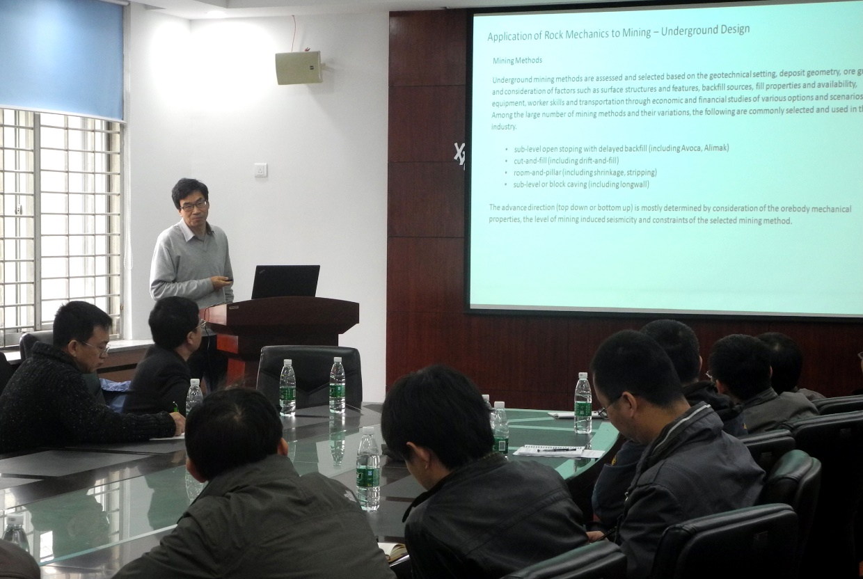 值此资源与土木工程学院建院20周年之际,我校知名校友、加拿大金罗斯黄金公司岩土工程部主任冉竟强于10月23日来学院访问参观,并以“An introduction to application of rock memechanics to mining”为题为学院师生做了精彩学术报告。学院李元辉教授主持了此次学术交流报告会。