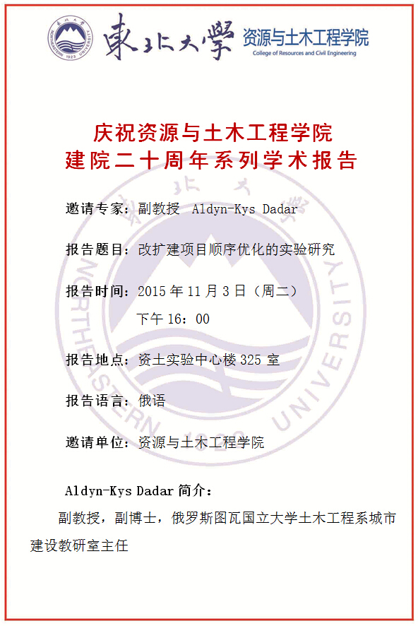 庆祝建院二十周年系列学术报告预告(十)