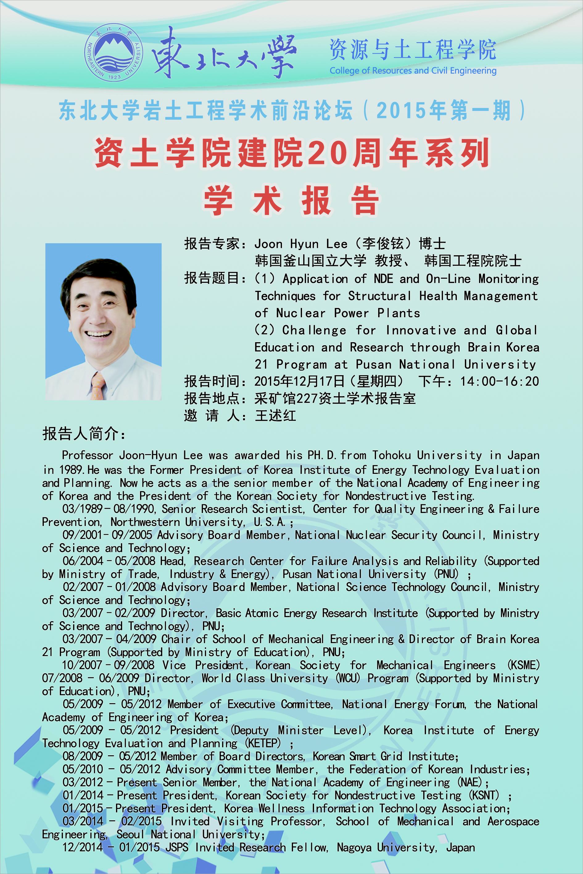 庆祝建院二十周年系列学术报告预告(十二)