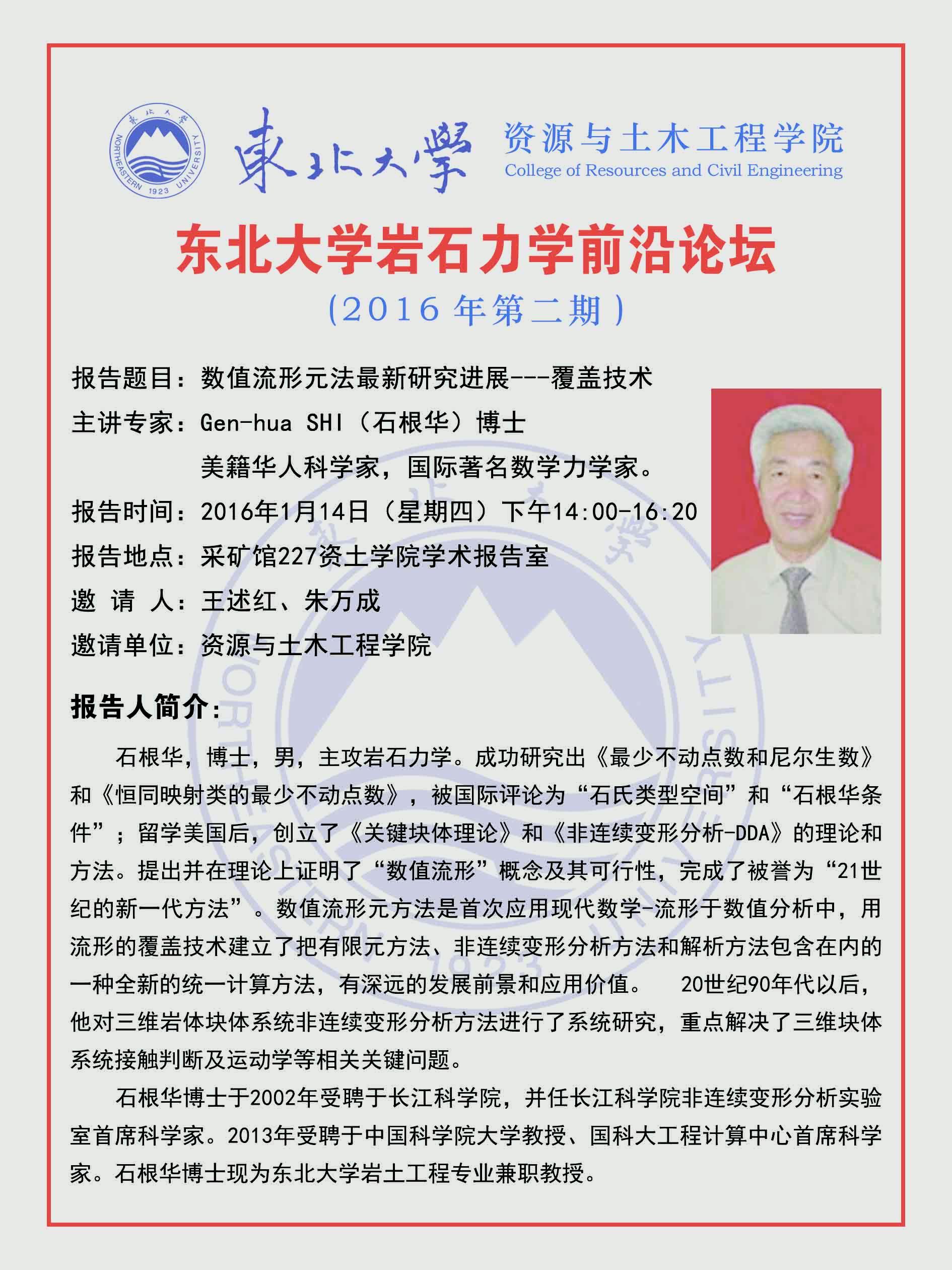 东北大学岩石力学前沿论坛(2016年第二期)预告