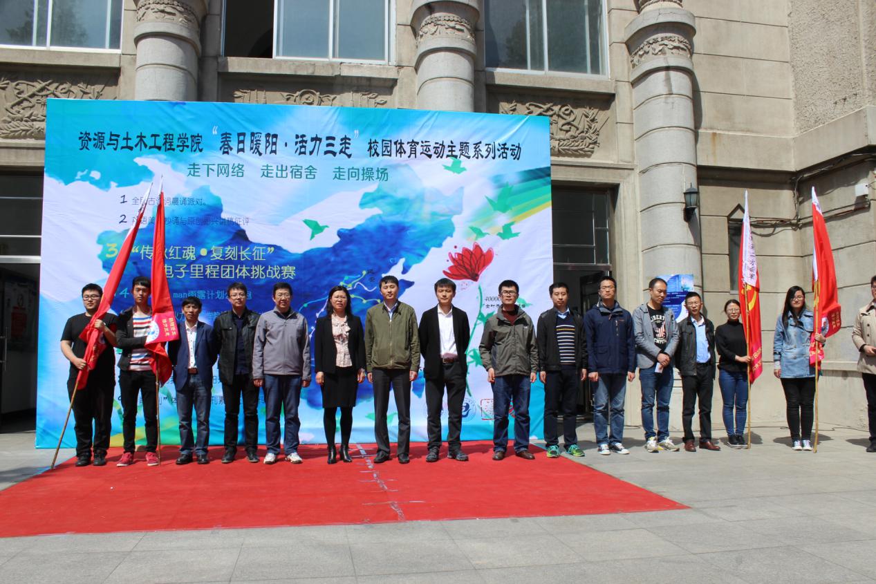 4 月 22日,资源与土木工程学院 “春日暖阳 ·活力三走 ”校园体育运动主题活动启动仪式于采矿学馆门前隆重召开。东北大学团委书记闫研、副书记黄达,学院党委书记王立慧、副书记兼副院长刘维出席启动仪式,学院部分班导师和辅导员一同出席。