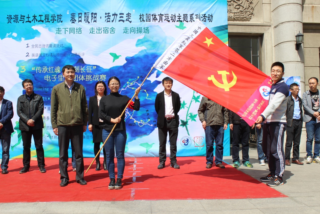 4 月 22日,资源与土木工程学院 “春日暖阳 ·活力三走 ”校园体育运动主题活动启动仪式于采矿学馆门前隆重召开。东北大学团委书记闫研、副书记黄达,学院党委书记王立慧、副书记兼副院长刘维出席启动仪式,学院部分班导师和辅导员一同出席。