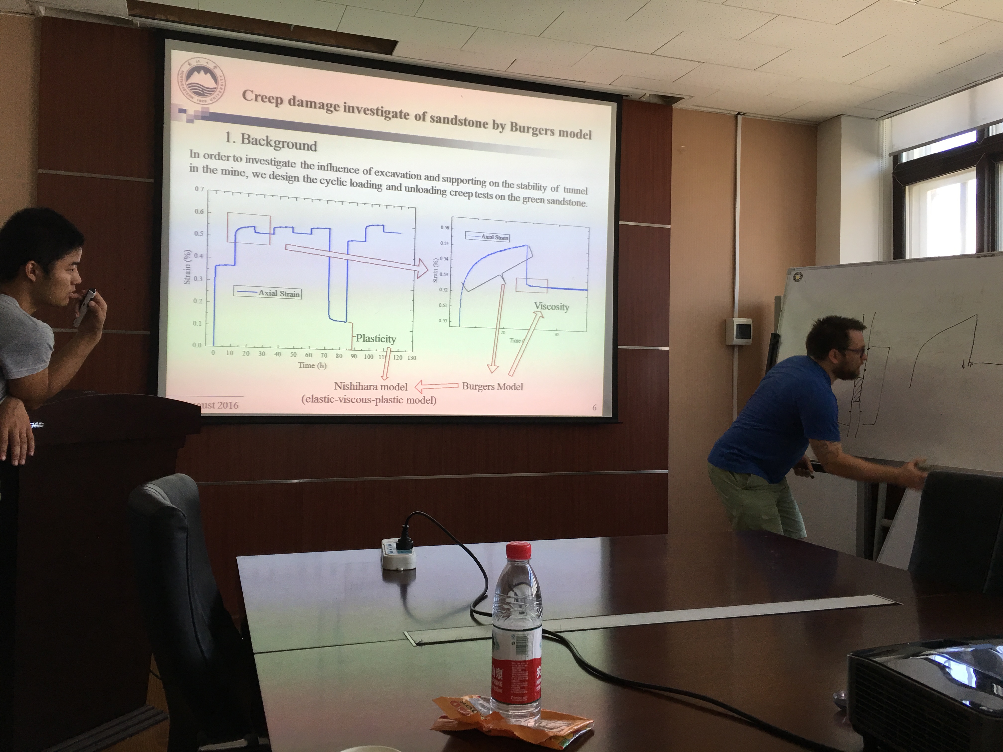 来访期间,Michael HEAP博士听取了岩石破裂与失稳研究所的部分研究生工作汇报,并就同学们的研究工作进行了广泛的交流,Michael HEAP博士对岩石破裂与失稳研究所同学们的研究工作给予了充分的肯定。