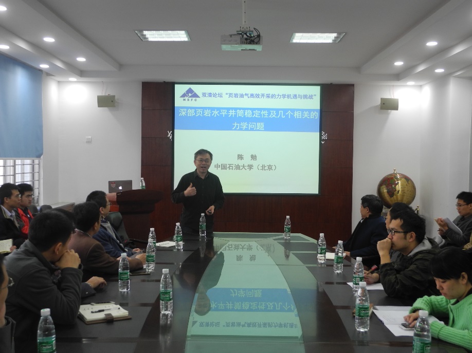 报告中,陈勉教授首先就我国现阶段深部页岩开采的现状及水平井筒稳定性力学问题做详细介绍。陈勉教授指出,我国页岩气开采具有地表丘陵分布、需要多井多产、埋深大及水资源少等特点,需要抛开以往诸多连续性及均匀性假设,以新视角综合看待其中包含的力学及多场耦合问题,从而帮助实现油气的长效流动及开采。此外,陈勉教授对该领域诸多前沿理论进行了阐述汇总,如基于能量原理的新型地层脆性评价方法、孔隙压力求解方程及高压气体渗流新理论等。