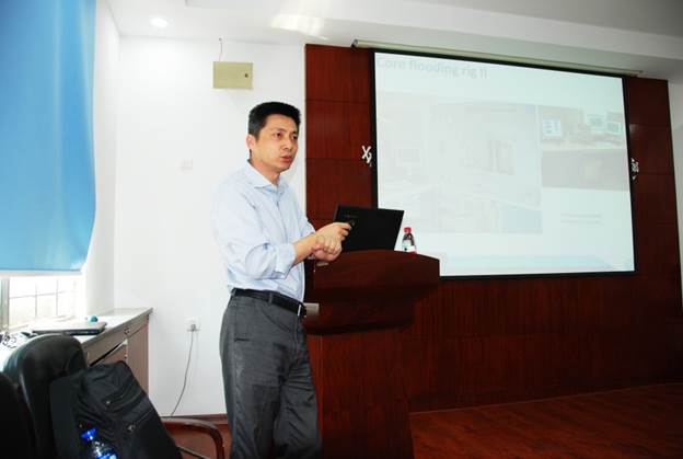 并在随后报告中重点介绍了研究团队在页岩方面的研究工作,包括页岩基质渗透率及扩散系数各向异性测量、页岩遇水膨胀及软化、支撑剂对于页岩渗透率的影响、页岩吸附膨胀等方面。报告引起现场老师和同学们的热烈讨论与互动,参会师生就页岩的CT扫描方法、页岩样品的制备与Zhejun Pan研究员进行了讨论。
