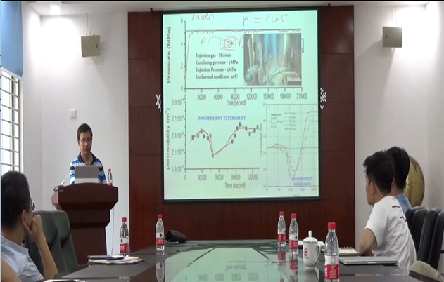 报告引发现场的老师和同学们的深入思考, Derek Elsworth教授和Jishan Liu教授多次提出问题邀请同学们参与互动。参会师生就水力压裂裂隙的走向、页岩样品渗透率测试方法进行了深入的讨论。两位教授耐心地解答了同学们在实验中遇到的各种实际问题。