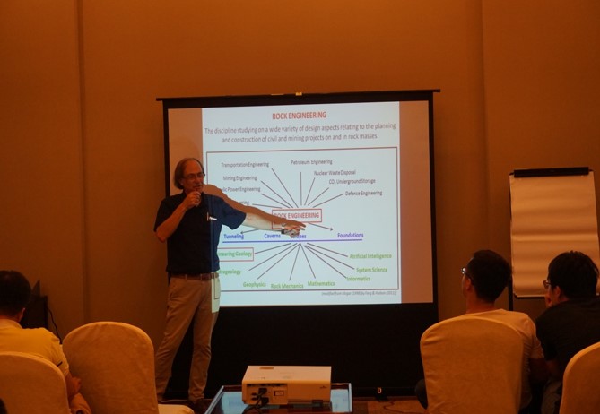 在7月13日到7月19日的短期课程中,Resat ULUSAY教授围绕“隧道工程地质”等研究开展了详细而生动的课程讲解。课程重点讲解了地质条件对隧道工程的影响。岩体开挖主要依赖于三个因素:1)岩体的性质:主要决定岩石的力学特性;2)结构特征:岩体结构的非连续性决定岩体的力学性质;3)应力水平:原岩应力水平(开挖之前)。多变的因素组合在一起能够导致隧道工程的非稳定性以及变形等现象的出现,尤其是在脆性岩石和延性岩石条件下。其他一些影响隧道稳定性的因素包括:隧道的延伸方向、岩体中所含的气体成分、矿物风化和膨胀的程度、地震活动、放射能以及有害矿物等。