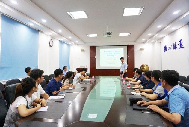 8月7日, Seokwon Jeon教授就“A case study of ground subsidence at a limestone mine in Korea”这一问题做了生动精彩的学术报告。Seokwon Jeon教授在报告中指出,通过研究发现,大面积的采空区和不利的地质条件,即断层、破碎带、石灰洞等,造成了地面沉降。目前大规模塌陷和沉降的风险较低,然而很多地方仍然存在下沉的风险。并且滑坡和泥石流的风险仍然不容忽视,建议持续监测MS事件和表面位移。报告会上,Seokwon Jeon教授多次与前来参加学术报告会的老师与学生进行讨论与互动,并对在场师生所提问题进行了深入讲解。