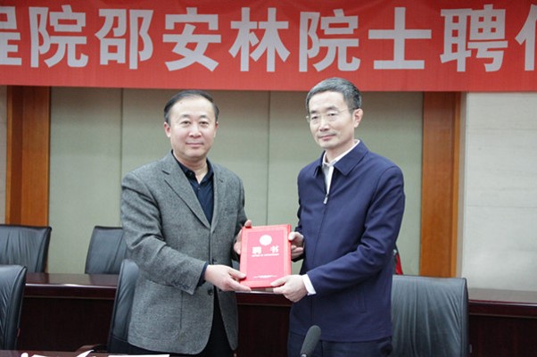 冯夏庭首先宣读成立东北大学智慧矿山研究中心的文件。赵继为邵安林颁发东北大学名誉教授及东北大学智慧矿山研究中心主任、特聘首席教授的聘书。