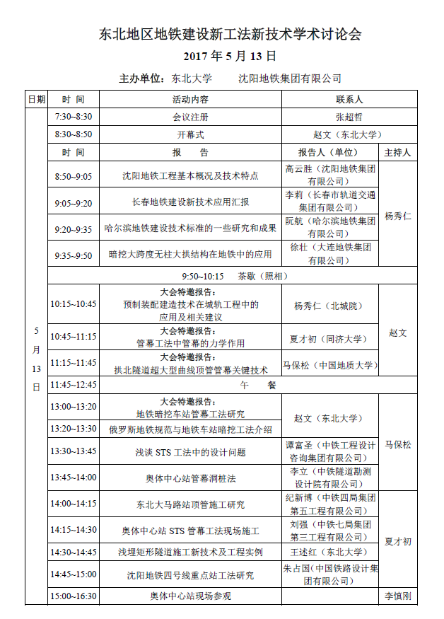 东北地区地铁建设新工法新技术学术讨论会