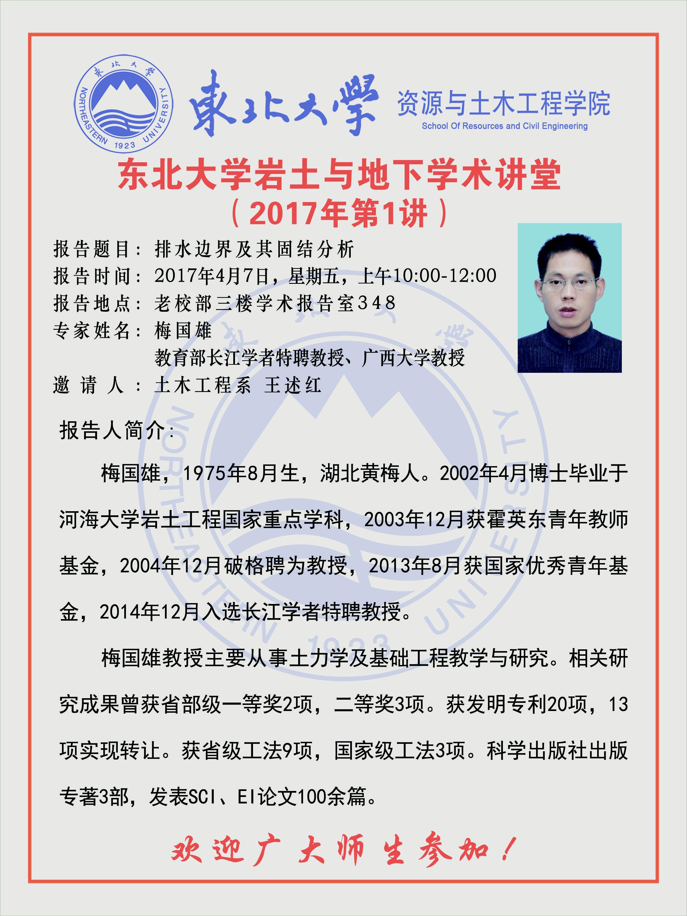 学术报告预告——岩土与地下学术讲堂2017年第1讲