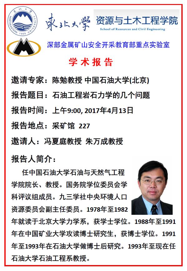 学术报告预告——陈勉教授