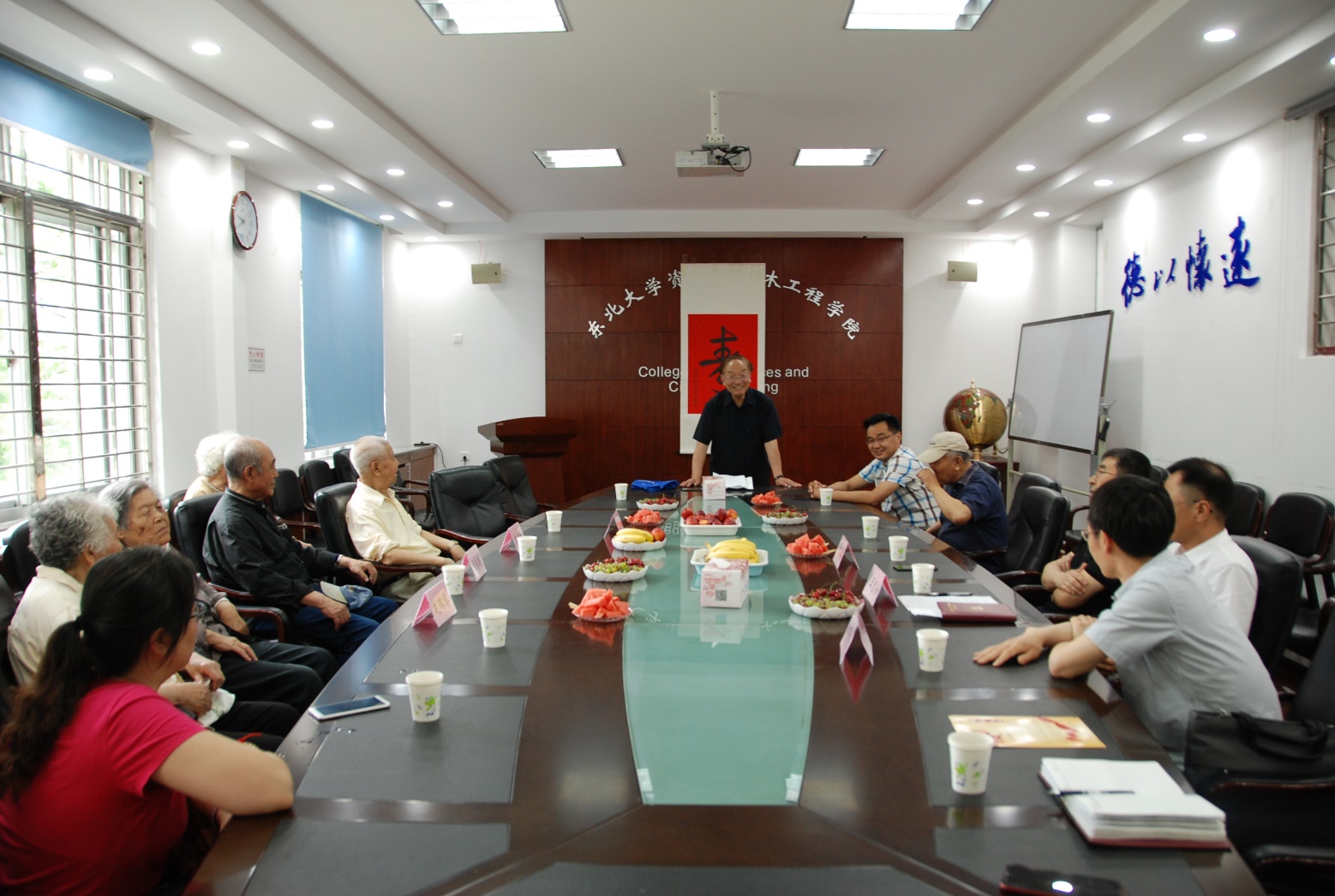 资土学院离退休分会负责人余仁焕教授介绍了5位老教师当年的工作情况,并代表离退休老教师向离退休处和学院对他们的关心和照顾表示衷心的感谢。