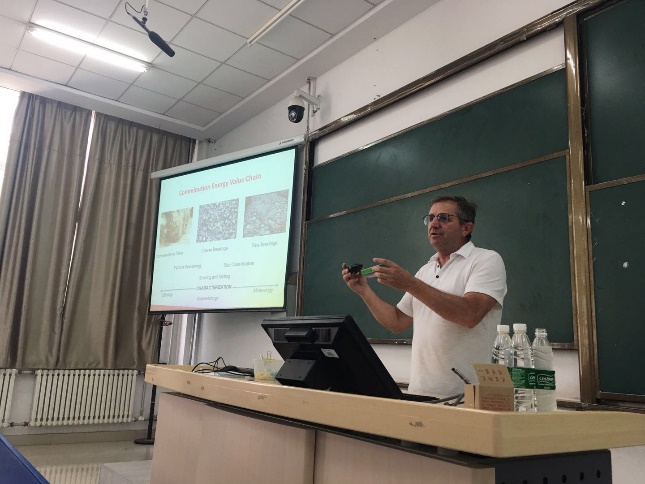 Klein教授的报告深入浅出,既有国际先进技术,也有基础问题的阐述,其所从事的国际前沿研究——扩大高压辊磨机处理粒度的下限、提高传统搅拌磨机处理粒度的上限,引起了听众们的浓厚兴趣,拓展了师生们的研究视野,现场的师生与Klein教授进行了很好的互动。