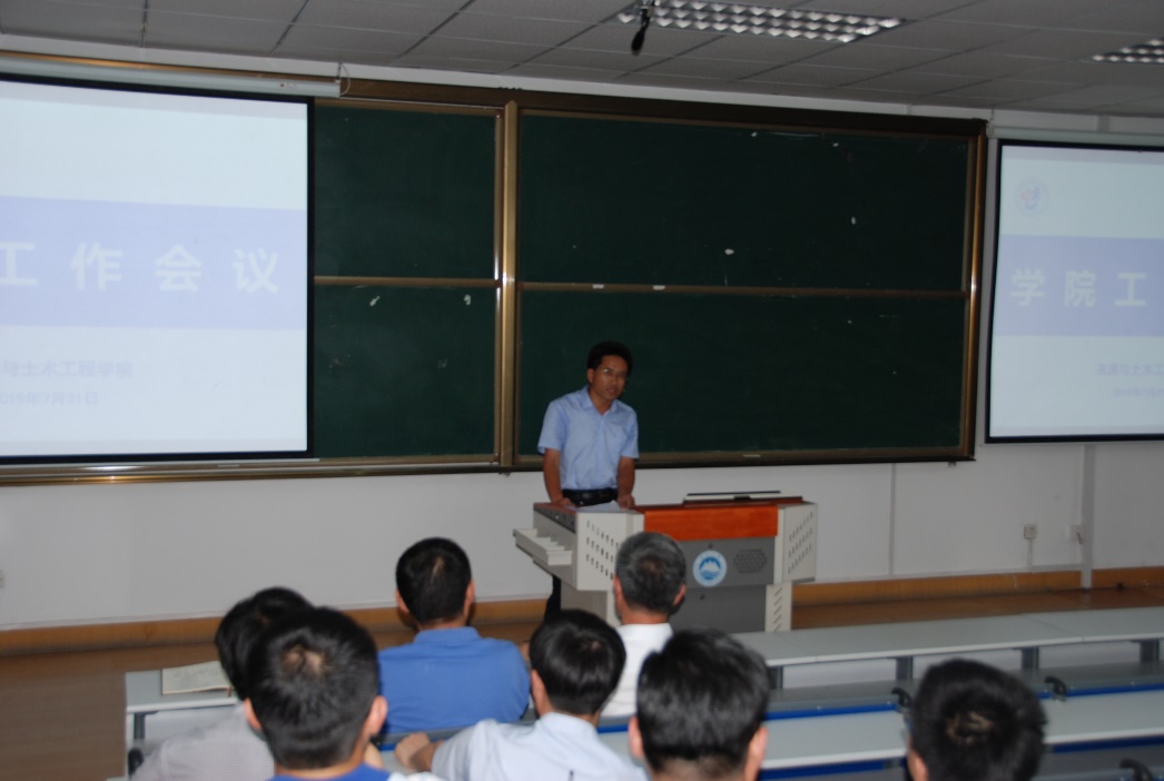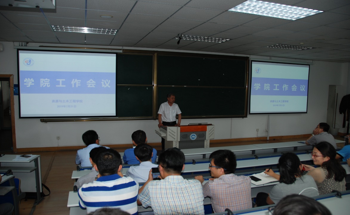 7月31日,资源与土木工程学院在采矿学馆201室召开学期末工作会议,学院全体教职工150余人参加,会议由学院党委书记艾国生主持。