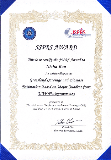 10月14-18日,第40届亚洲遥感会议在韩国大田召开,学院测绘工程系副教授包妮沙口头报告“Grassland coverage and biomass estimation based on major quadrat from UAV photogrammetry”获得亚洲遥感会议优秀论文奖。亚洲遥感会议由亚洲二十八个国家的遥感学术机构与组织组成,主要研讨亚洲的遥感技术和地理信息系统有关问题,交流科学、应用和技术信息。第40届亚洲遥感会议共有433篇口头报告在会上进行交流,最终评出5篇35岁以下青年学者优秀论文奖。