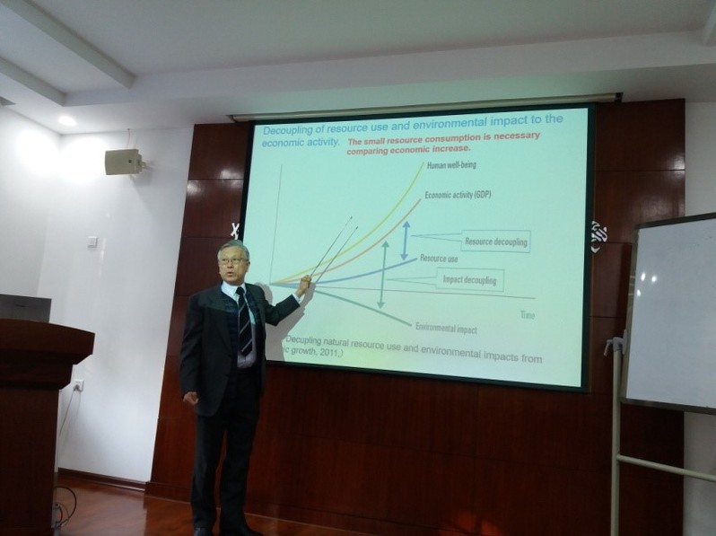 Toyohisa Fujita教授从“Introduction of world destination”、“Mineral resources and materials”、“For the circulation society—The law for Material-Cycle Society”三个部分展开,介绍了日本废弃物回收利用的现状及新技术。会后,Toyohisa Fujita教授针对废弃物回收前沿同与会师生进行了深入交流。
