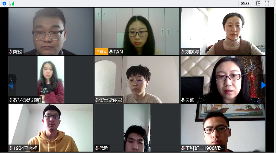 会议伊始,学生办主任吴迪传达学校疫情防控工作的最新精神,提醒大家继续保持高度警惕,做好疫情防控和个人防护工作。随后,与会师生就日常生活、线上学习等方面进行深入交流,参会老师对学生们提出的绩点核算、线上补考、专业分流、毕业安排和同学们返校途中以及返校后存在的担忧等问题进行了耐心沟通和解答。