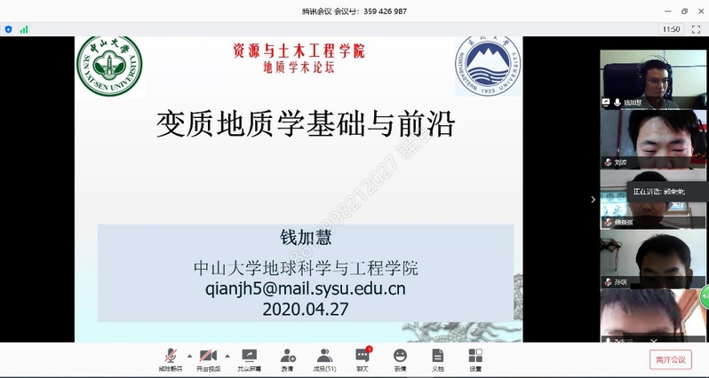 4月27日下午,为更好指导毕业设计/论文顺利开展,地质系特聘请中山大学地球科学与工程学院钱加慧副教授为地质系师生开展了题为“变质地质学基础与前沿”的线上讲座,地质系69名师生参加讲座。
