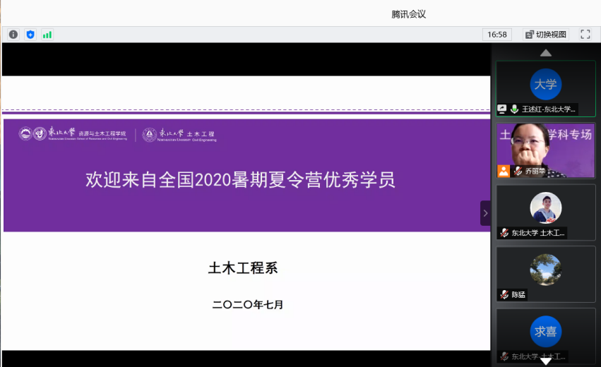 本届优秀大学生夏令营活动在云端线上开展,这是土木工程专业基于当前疫情形势下的一次新的尝试。学院坚持疫情防控与招生拓展工作两不误、双促进,土木学科积极调整工作思路,丰富工作办法,保证了夏令营的顺利开展。期待广大优秀大学生来到东北大学土木学科继续深造!