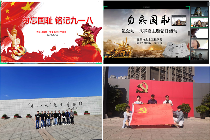 活动期间,各支部通过开展线上交流会、观看《9.18事变》纪录片、主题朗诵、重温《党章》、参观“九∙一八”历史博物馆等多种形式开展主题党日。通过此次党日活动,进一步激发了学生党员的爱国情怀,强化了对党性的认识,同时也进一步增强了学生党员的责任感与使命感。同学们表示,在今后的学习工作中,要更加严格要求自己,脚踏实地,大力弘扬抗战精神,增强忧患意识,发挥出党员的先锋模范作用。