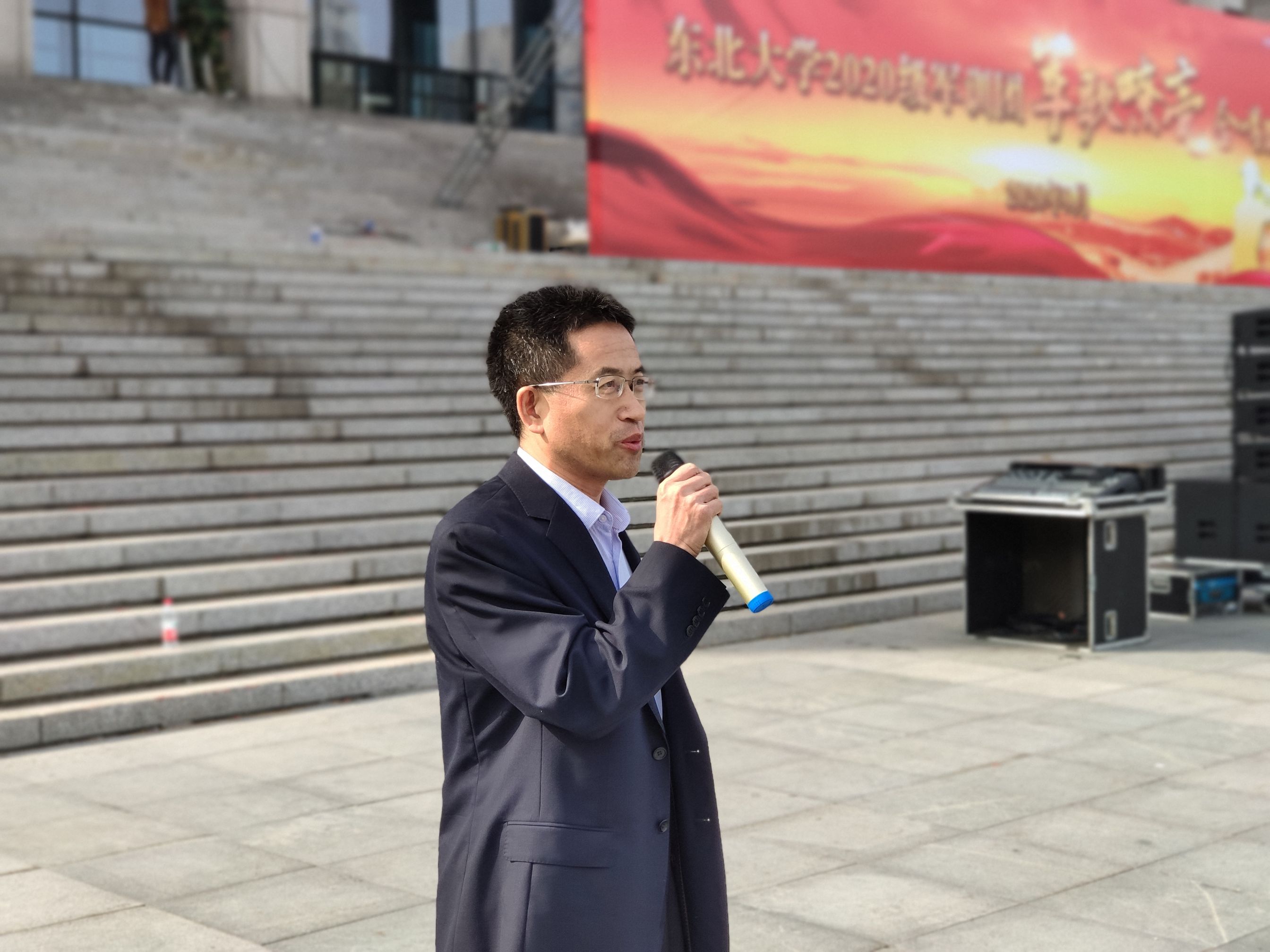 9月23日上午,学院党委书记艾国生、党委副书记兼副院长刘婉婷来到综合楼北广场,看望慰问我院2020级军训参训师生教官。