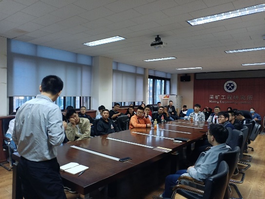 会上,徐涛教授分享了自己在国内外的求学和科研经历,提醒学生在大学期间要有清晰的自我认识和人生规划,鼓励在大学四年求学路上实现自身价值与承担社会责任相统一,并介绍了采矿学科未来的发展趋势和多学科交叉融合,加深学生对矿业及土木等相关专业的基础认识。