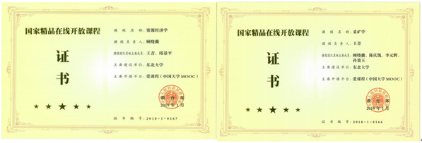《资源经济学》《采矿学》国家金品在线开放课程证书