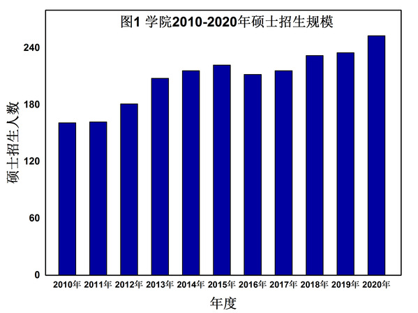 学院硕士研究生招生规模不断扩大,跨入快速发展新阶段。1993~1998年间,硕士研究生每年招生人数在18~38人之间波动。在“十二五”后期,学院硕士研究生每年招生人数突破200人,“十三五”期间,硕士研究生每年招生人数保持在200人以上,2020年硕士招生人数达到253人。