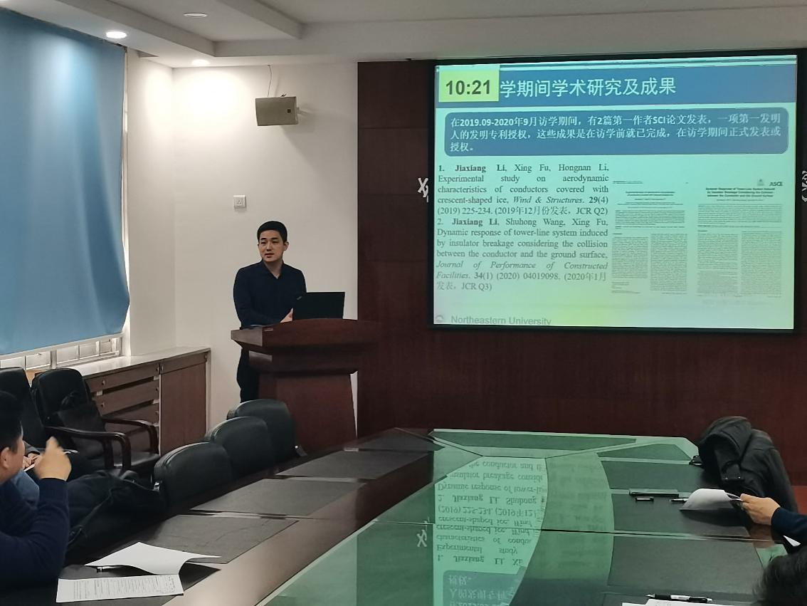 土木工程系李嘉祥老师、测绘工程系郭甲腾老师、张胜军老师和环境工程系赵鑫老师介绍了访学机构特色、参与学术活动情况,同与会教师交流了一年来的科研进展和学术成果,同时分享了赴外交流经验。他们表示出国访学要制定明确的研究计划和显性可量化目标,注重与导师团队的交流,通过思想的碰撞与融合有助于提升学术自信、开拓国际化视野。随后,出国(境)人员管理工作小组对四位老师访学整体效果进行了测评。