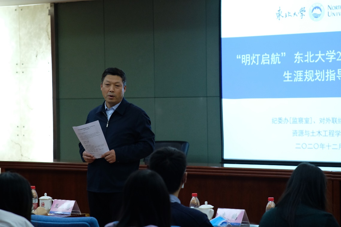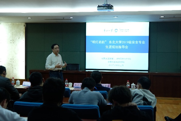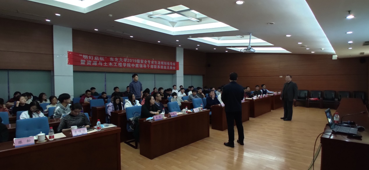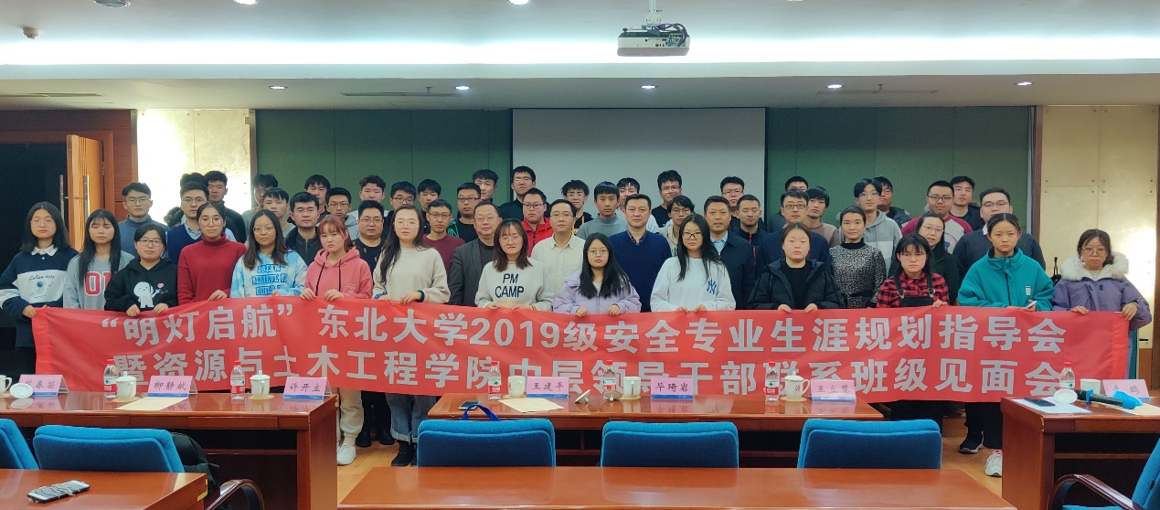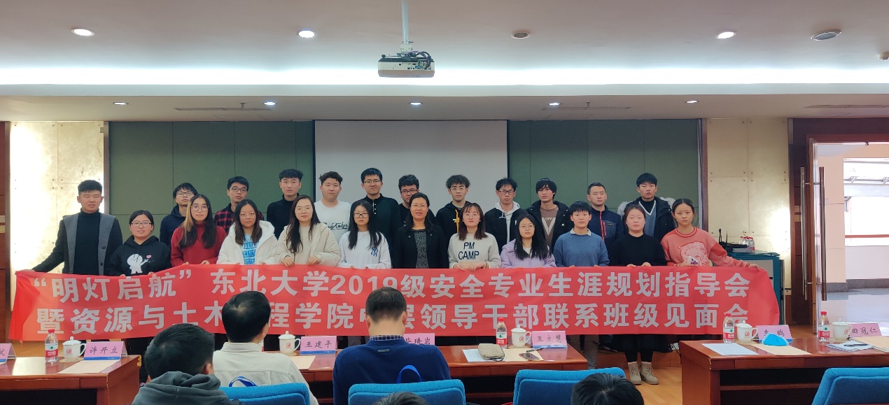 12月23日,东北大学2019级安全专业生涯规划指导会暨中层领导干部联系班级见面会在汉卿会堂402室顺利举行。安全1901班中层领导干部联系人、东北大学纪委副书记、纪委办[监察室]主任王立慧,安全1902班中层领导干部联系人、对外联络与合作处处长李鹤,沈阳市应急管理局人事处处长毕琦岩,沈阳万益安全科技有限公司综合评价室主任王建平,安全工程系许开立教授、柳静献教授、苑春苗教授,就业指导中心田冠仁老师,外联处合作发展办公室李佳佳老师,安全1901班班导师常德强老师,学院学生工作办公室吴迪老师、白岩老师、陈松老师出席活动,2019级安全专业全体本科生参加活动,会议由李鹤处长主持。