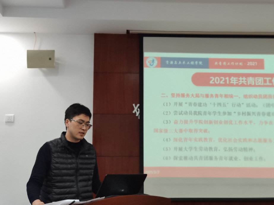 会上,各年级辅导员在总结上学期工作经验的基础上,结合本年级学生工作发展需求,围绕思想政治教育、学生事务管理、安全教育、心理健康、就业指导等重点领域汇报了春季学期工作计划。研究生兼职辅导员结合自身专业背景和优势特长,提出具体工作目标,协助专职辅导员拓宽学生工作深度广度。学院团委书记白岩汇报了2021年共青团工作计划和要点,并围绕建党100周年作出具体工作安排和部署。