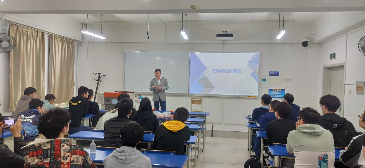 随后,陈家富和关长庆结合自身研究介绍了专业发展前景,对升学和就业等不同方向进行了分析,给出了建议,他们指出,同学们要有意识地向前看,了解行业前沿,同时也要走实脚下的路,为迎接未来选择做好准备。答疑环节同学们积极踊跃,两位老师耐心解答了同学们在生涯规划方面存在的问题。