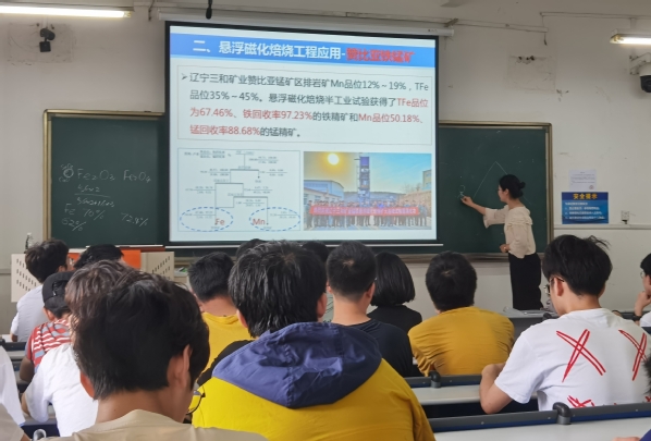 讲座着重介绍了学院矿物加工与粉体技术研究所多年来在复杂难选矿产资源高效开发利用方面所做的工作及成果,相关技术及装备研发工作实现鞍钢集团、酒钢集团等多家大型矿山企业工业应用,大幅度提高了我国大宗铁矿资源的利用率,产生了显著的经济与社会环境效益。同时,相关技术及装备服务于“一带一路”沿线,为我国乃至世界钢铁工业的健康可持续发展提供了重要科技支撑。赵冰鼓励同学们弘扬学院前辈们扎实奋进的科研精神,在青春年少时努力奋发向上、自强不息,做奋斗者,知行合一,做实干家。