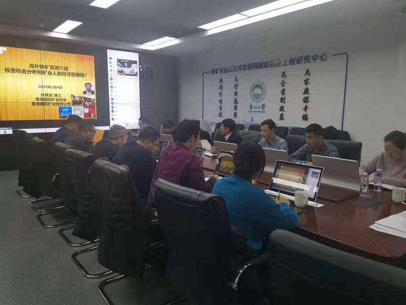 3月4日下午,学院“喜迎百年校庆·共话东大情愫”校友系列报告在难采选铁矿资源高效开发利用国地联合工程中心会议室成功举办。东北大学采矿系选矿工程专业82届校友、著名的国际矿业投资专家孙铁民博士受邀于线上为学院全体师生作了题为《海外铁矿资源介绍、投资机会分析和国际化矿业人才发展》的专题学术报告。此次会议采用“现场+云端”相结合的方式召开,学院院长韩跃新教授主持报告会。