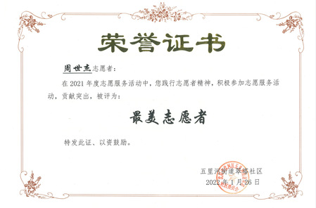 党员周世杰获得“最美志愿者”证书