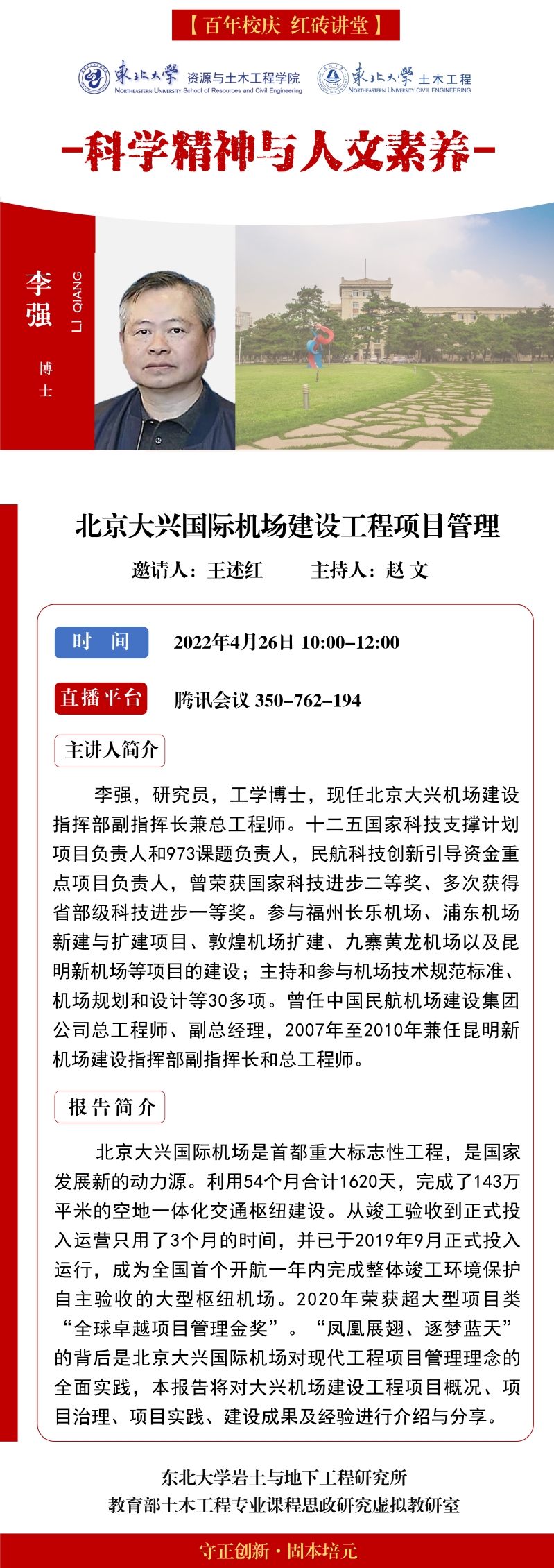 红砖大讲堂|科学精神与人文素养(第三期)课程预告