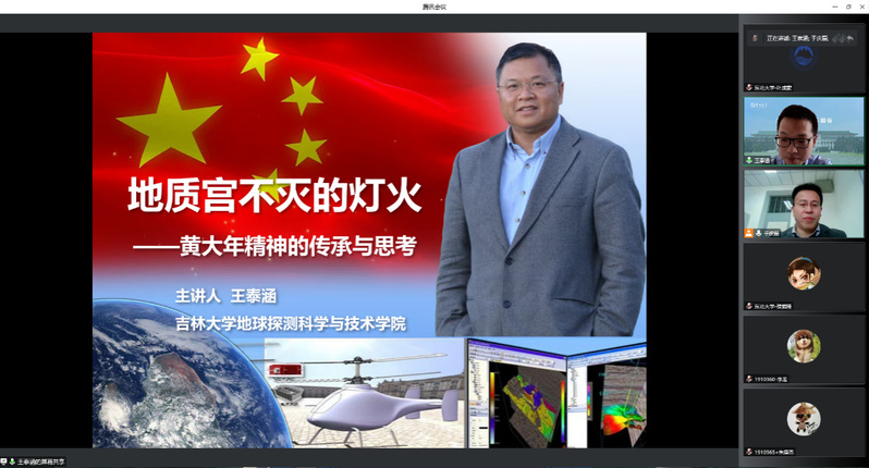11月19日上午,学院通过线上方式举行研究生“科学精神与人文素养教育”专题讲座,邀请黄大年教授的学生——吉林大学王泰涵副教授作题为《地质宫不灭的灯火——黄大年精神的传承与思考》专题报告,学院2021级和2022级100多名博士研究生和老师参加,副院长于庆磊主持报告会。