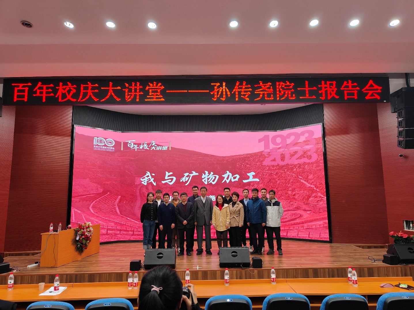 4月5日晚,东北大学百年校庆大讲堂—孙传尧院士报告会在科学馆201建龙报告厅举行。我校杰出校友、著名选矿工程专家、中国工程院院士孙传尧教授应邀做“我与矿物加工”专题报告。报告由资源与土木工程学院党委书记艾国生主持,东北大学对外联络与合作处处长李鹤、东北大学党委宣传部常务副部长闫研、资源与土木工程学院院长韩跃新、部分专任教师以及300余名学生代表与会聆听。