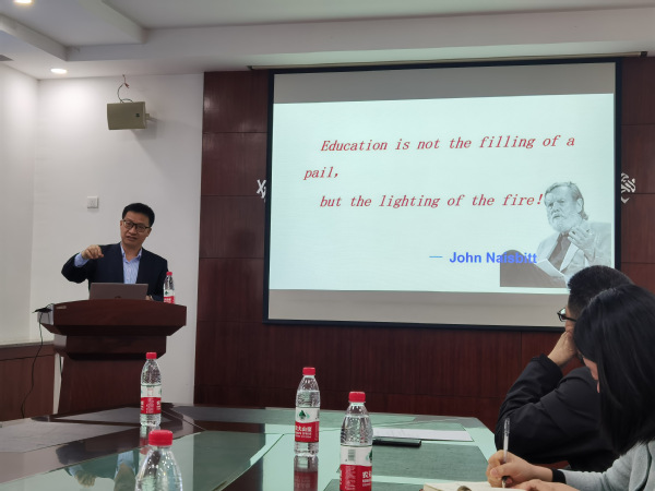 郑俊杰教授精心准备,结合自己担任教学竞赛评委以及多年的教育教学经历,分析高校青年教师教学竞赛的特点,指出目前高校教学中存在的问题,并对青年教师如何搞好教学工作、提升课堂教学效果、提高教学质量给出了意见和建议。郑教授指出:“教无定法、教必有法、教需学法、教于得法”,同时提倡各位年轻教师“改革以教师为主的填鸭式灌输,创新以学生为中心的启发式教学”。报告结束后,郑俊杰教授与在座的青年教师就教学中存在的困难和老师们参加教学竞赛遇到的问题进行深入讨论。郑俊杰教授的报告让老师们受益匪浅,表示要努力练好教学基本功,提高教学能力和教学水平。