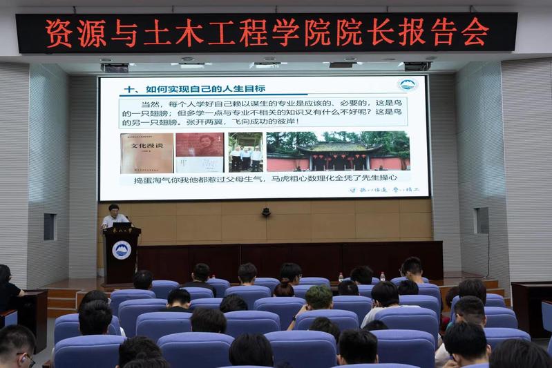 韩跃新通过介绍自身成长、求学、工作、科研经历,传递了他对专业从迷茫到投入继而热爱的心路历程,以及“干一行,爱一行,专一行,精一行”的人生感悟。他希望同学们树立正确的人生观、价值观,热爱专业、欣赏专业,刻苦学习、提升本领,认真思考、正确选择,做一个具有理性思维、广博学识、文明教养、身心健康、开拓进取、责任担当的时代新人。