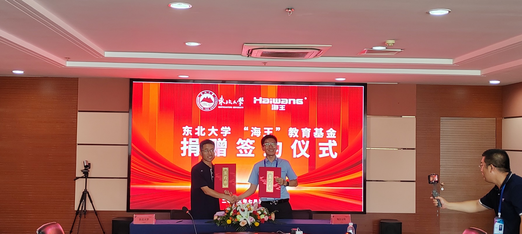7月31日,艾国生一行到访海王旋流器有限公司,与董事长孙吉鹏、总经理王书礼及企业校友等座谈并参观旋流器生产、装配车间。双方围绕校企合作、人才培养、科研攻关等方面深入交流,签署了“东北大学‘海王’教育基金”协议。