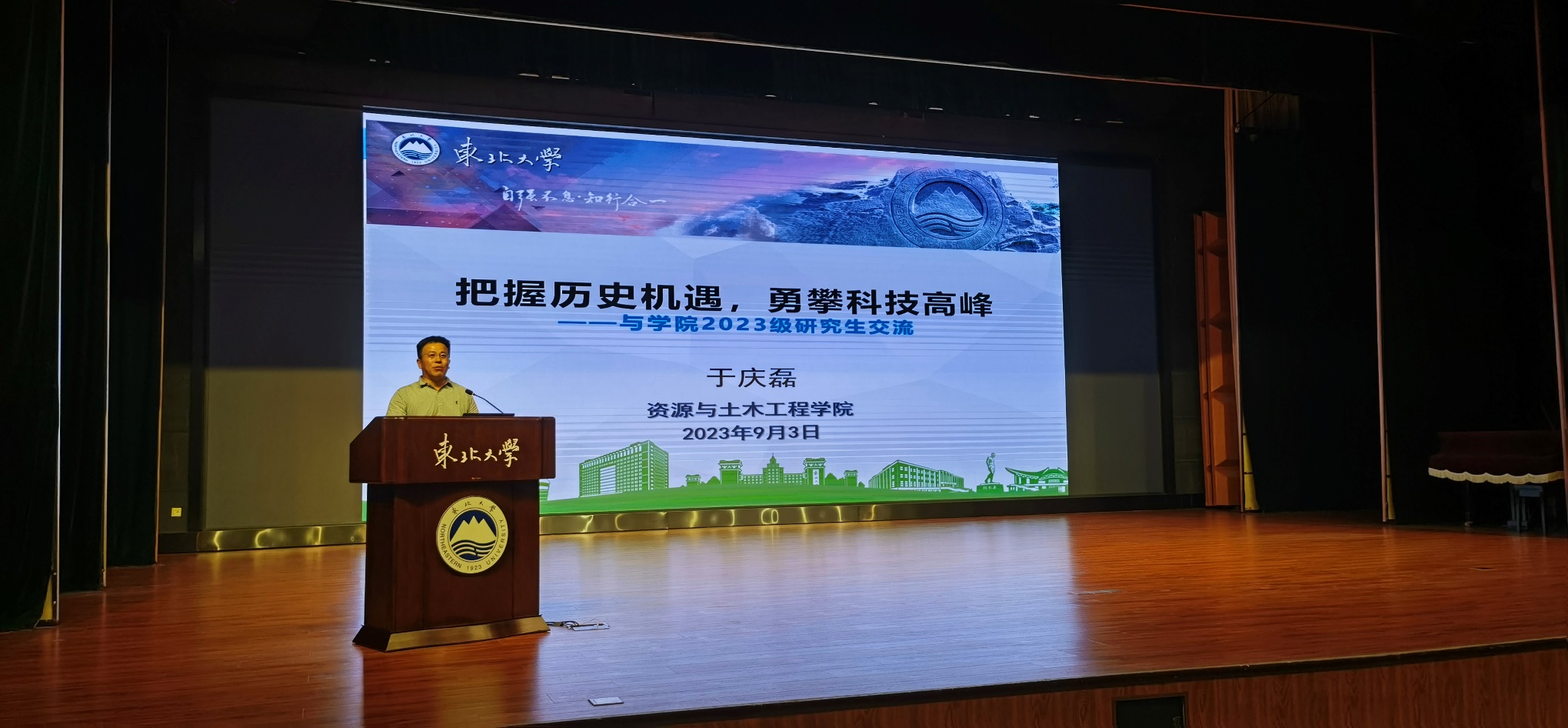 在新生见面会上,于庆磊以“把握历史机遇,勇攀科技高峰”为题,分别从青年人的使命担当、研究生教育面临形势、学院历史沿革、研究生科研能力培养等方面,向2023级研究生做了详细的介绍,并结合多年来的研究生培养经验,勉励同学们继承并发扬“五四煤”精神和“可可托海的东大人”精神,在各个领域展现资土人的风采。