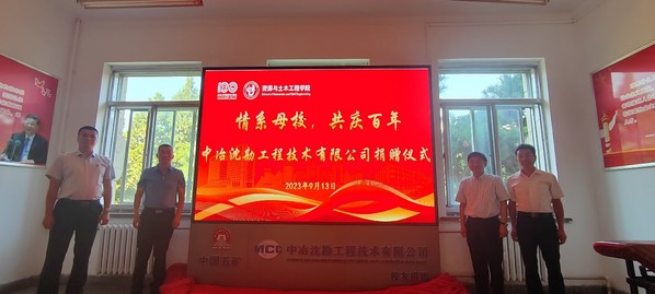 9月13日上午,学院在采矿学馆227会议室举行中冶沈勘工程技术有限公司校友捐赠显示屏揭幕仪式。中冶沈勘工程技术有限公司总工程师王家伟一行,学院院长韩跃新、党委书记艾国生和有关领导参加捐赠仪式。