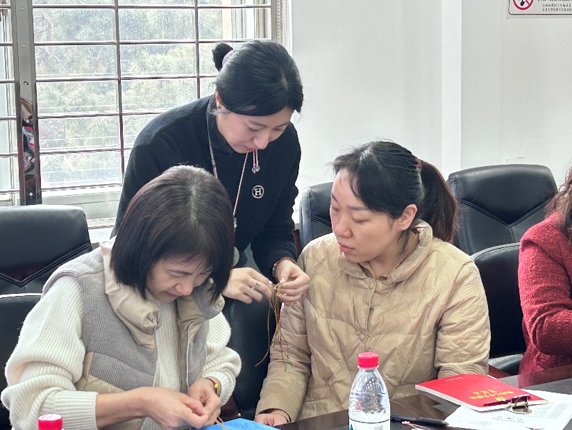 活动过程中,大家相互交流、互相学习,分享着自己的心得和体会,原本简单的绳子在她们的手中变成了一件件精美的手工艺品,每一件作品都蕴含着女教职工们对生活的热爱和对幸福的追求。